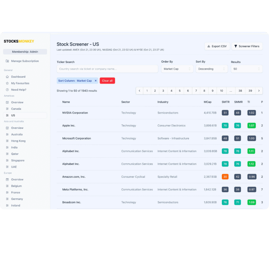 Identify global stocks with high-momentum using our StockMonkey Momentum Ranking (SMMR) for your own further analysis.
